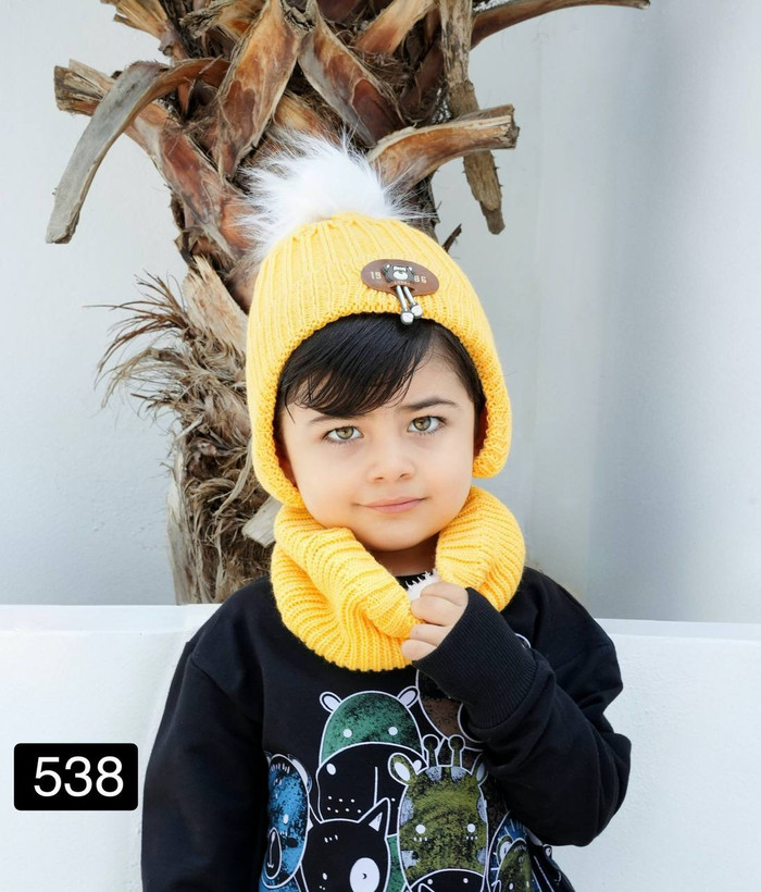 گردنی و کلاه بافت پسرانه مدل خرسی کد 538