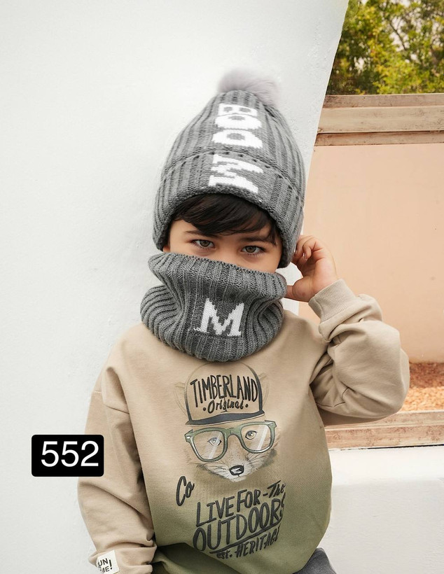 گردنی و کلاه بافت پسرانه مدل boom کد 552
