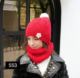 گردنی و کلاه بافت دخترانه مدل گل کد 553